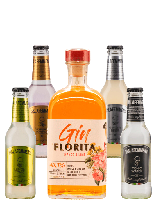 In questa box incredibile trovi 1 Gin Premium Florita Mango e Lime, 2 Lemon Tonic, 2 Tonic Water, 2 Ginger Beer Tonic, 2 Grape Fruit Soda Tonic.